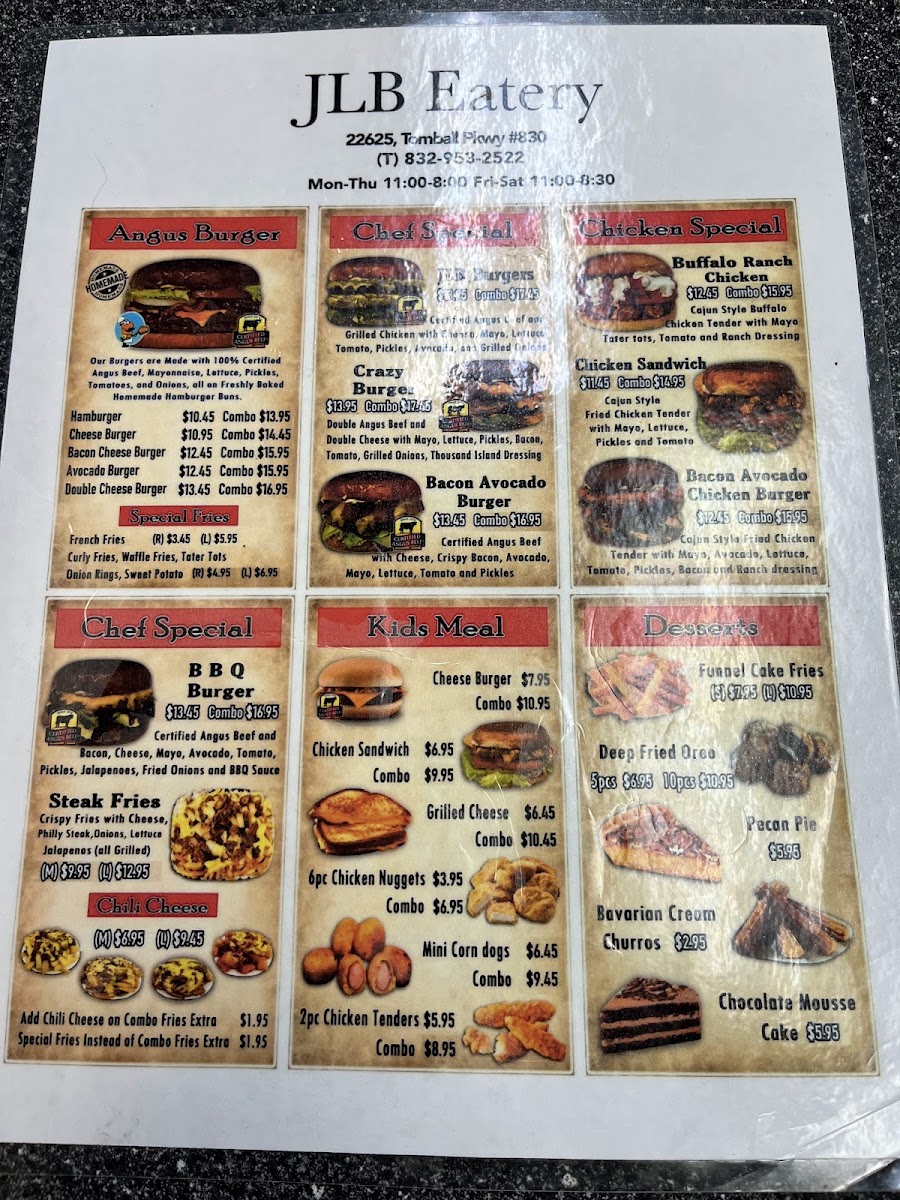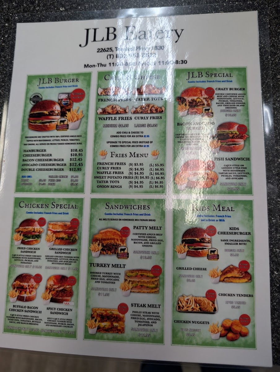 Welcome to JLB Eatery, a delightful food haven located at 22625 Tomball Pkwy in Tomball, TX. This charming spot specializes in comforting American cuisine that never fails to impress. The menu boasts an array of mouthwatering options, including their famed Chili Cheese Fries—available in various styles like tater tots, waffle fries, curly fries, and classic French fries, all generously smothered in savory chili and melty cheese.